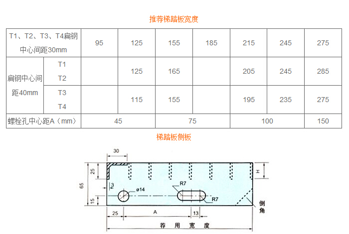 踏步板公差:寬度W±3mm,長(zhǎng)度L-3mm